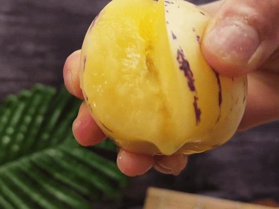 這樣的人參果,經(jīng)過云南優(yōu)異自然環(huán)境和匠心果農(nóng)的悉心呵護(hù),一個個長得如同溫潤的白玉石。果身以淡黃為主,帶有紫色花紋,還挺漂亮。