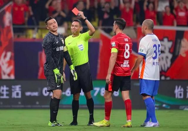 “王大雷一扣球,說實話扣得有點大,就被費利佩截住了。然后兩人身體碰撞,最后沒辦法,因為王大雷出了禁區(qū),沒人把守球門,成了空城計。他這屬于破壞明顯的得分機會,所以被改判紅牌?!?/p>