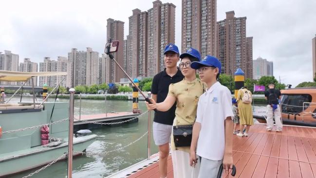 當(dāng)天,身著便服的軍人們卸下執(zhí)勤的嚴(yán)肅,攜老扶幼,在長風(fēng)公園碼頭登上蘇州河游船,在清風(fēng)中開啟愜意旅程。