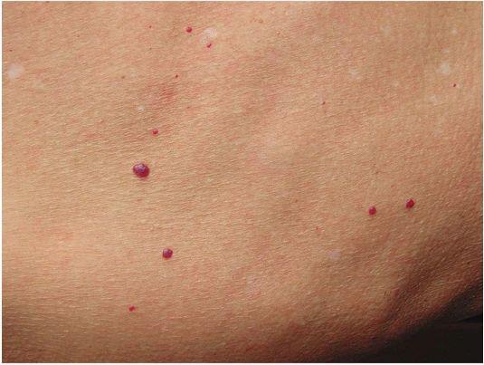[1] Qadeer HA, Singal A, Patel BC. Cherry Hemangioma. In: StatPearls. StatPearls Publishing, Treasure Island ( FL ) ; 2023. PMID: 33085354.
