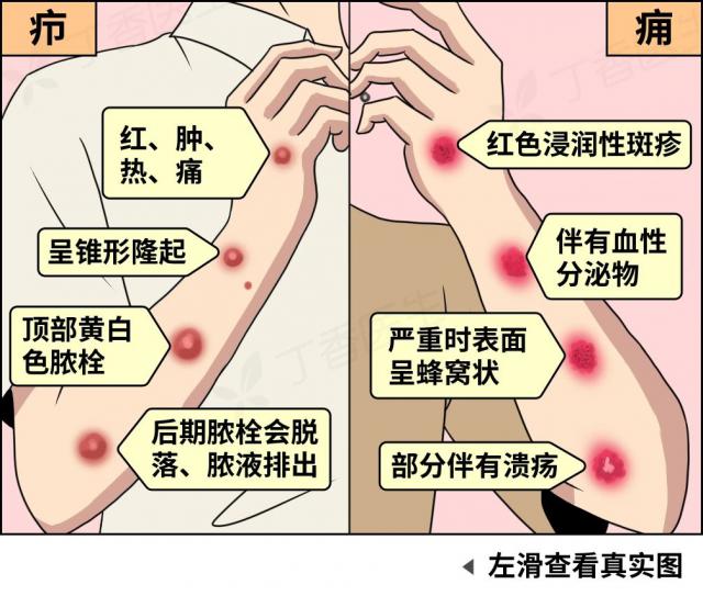 如果出現(xiàn)皮損變大、腫痛、發(fā)熱等癥狀,一定要及時去皮膚科就診。注意,危險三角區(qū)的癤千萬別用手抓,以防顱內(nèi)感染。