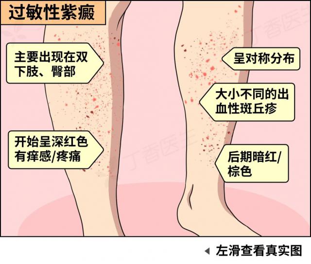 需要關(guān)注的是過敏性紫癜,它是一種血管炎,主要出現(xiàn)在雙下肢,呈現(xiàn)出血性的斑丘疹,對健康有一定威脅,需要去皮膚科就診,去除病因。