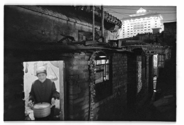 若干年后,這張照片在紀(jì)念改革開放 20 年攝影展中再次刊出,我的作者自述是:“北京五星級的 X 飯店建設(shè)時(shí),引發(fā)住房及城改討論。我為找合適鏡頭跑遍附近胡同。照片拍于已拆遷一半的大雜院,林大娘正做晚飯……”