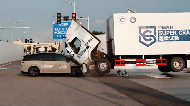 想象一下這樣的場景:一輛看似普通的家用 SUV,在路上遇到一輛比客廳還大的重型卡車,不僅不避讓,反而一腳油門撞上去,還把卡車撞得四腳朝天,如同表演托馬斯回旋。
