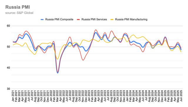 與此同時(shí),生產(chǎn)商仍在承受痛苦,受高利率和需求下降的雙重壓力。標(biāo)普全球俄羅斯制造業(yè)采購(gòu)經(jīng)理人指數(shù)(PMI)7月降至47.0,低于6月的47.5。該指數(shù)低于50.0表明行業(yè)收縮。