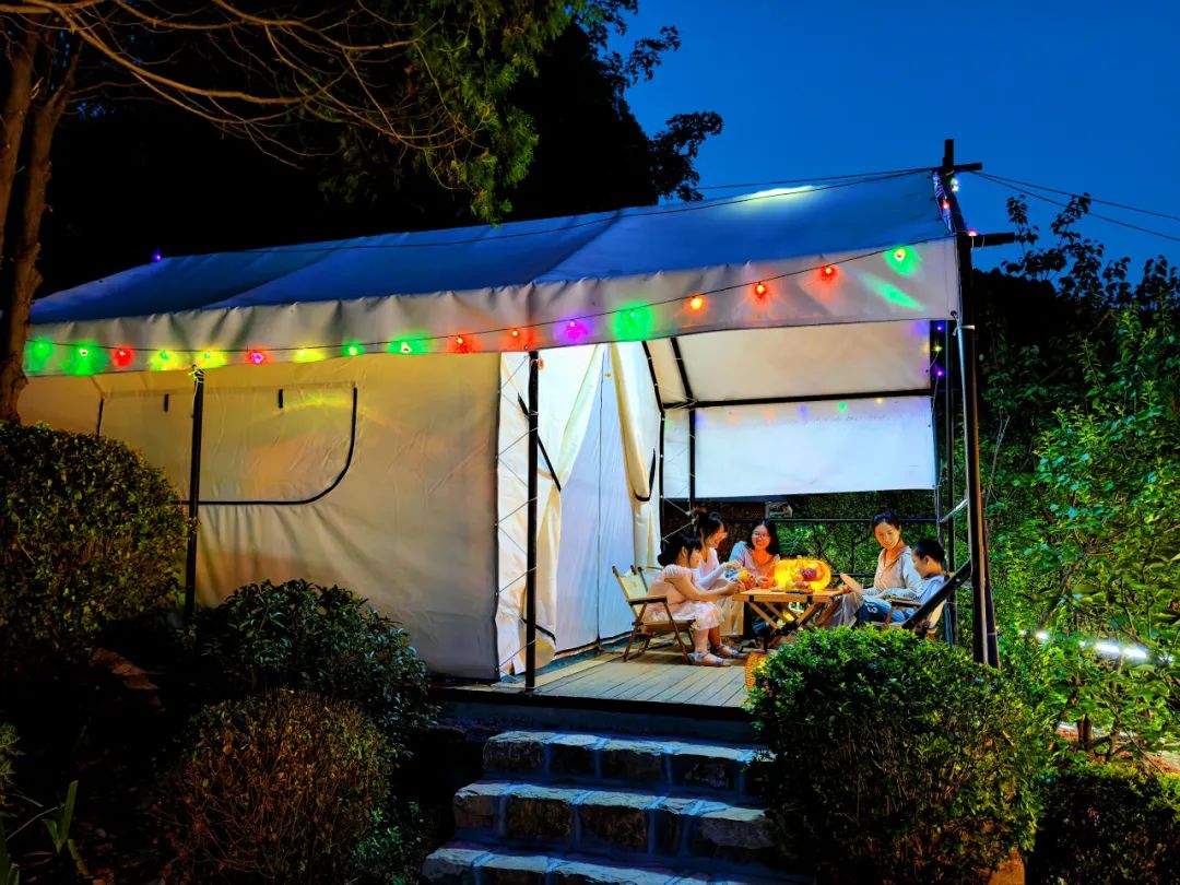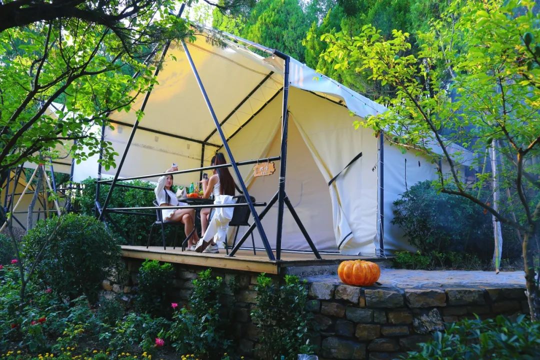 景區(qū)提供豐富的戶外體驗項目,有戶外燒烤、森林徒步、露營住宿等。帳篷內(nèi)配備1.2米或1.5米的床,多種價位可供選擇。