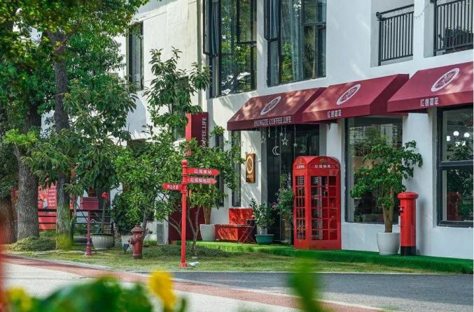 從山前坊出發(fā),不過3、4分鐘的車程就可以到藍(lán)·原葺森林文旅產(chǎn)業(yè)園,這里宛若林間秘境,主打一個(gè)“野”趣。露營風(fēng)的帳篷、工業(yè)風(fēng)的紅白小房、土耳其風(fēng)的咖啡店,都是絕佳出片點(diǎn),幾家咖啡也很好喝。