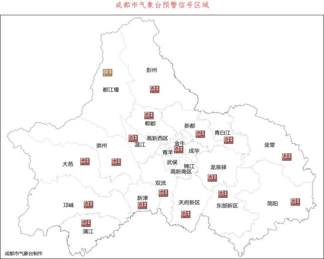 目前都江堰已發(fā)布高溫橙色預(yù)警信號(hào),其余區(qū)(市)縣均已發(fā)布高溫紅色預(yù)警信號(hào)。