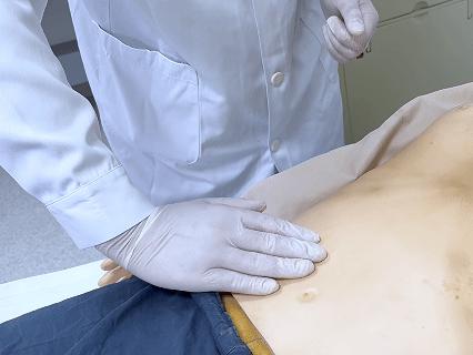 平躺在床上,用手掌從上腹部輕柔地向下推按至下腹部,重復約100次,有助于促進腸道蠕動。