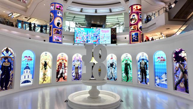 來到位于靜安大悅城南座3F中庭的快閃現(xiàn)場,粉絲可穿梭于“彩窗廣場”“黃金之風(fēng)畫廊”“羅馬斗獸場”等精心設(shè)計的主題場景,瞬間置身JOJO的奇幻宇宙。