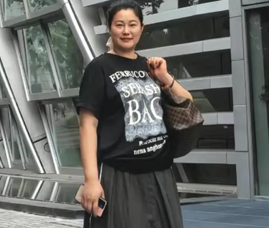 活動(dòng)中她身穿黑色短袖搭配同色系半身裙,挎著大皮包,頭發(fā)扎到腦后比著大拇指,完全沒(méi)有女明星的星光,說(shuō)像上街買菜的“胖大嬸”也不為過(guò)。