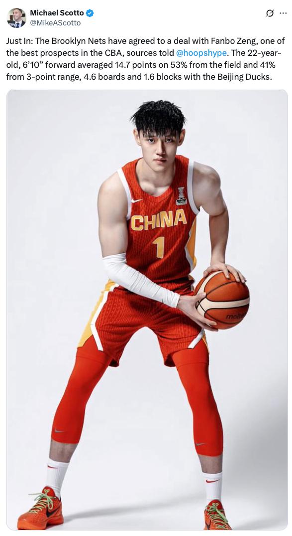 名記爆料曾凡博加盟籃網(wǎng),成今夏中國男籃留洋第4人、進NBA第2人