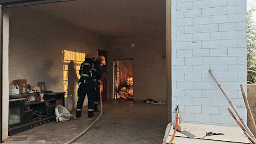 接警后,消防救援人員趕到現(xiàn)場(chǎng),發(fā)現(xiàn)民房的一間偏房火勢(shì)正處于發(fā)展階段,屋頂已經(jīng)被燒穿。