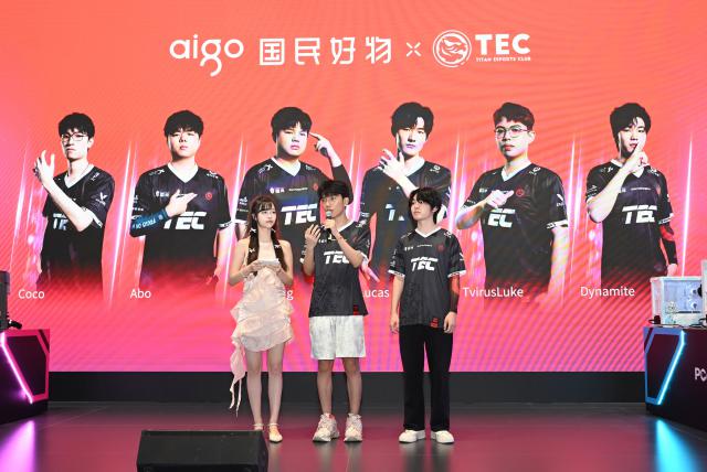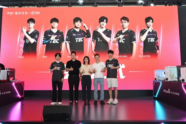 電競對決是太平洋網(wǎng)絡(luò)展臺的一大亮點。aigo國民好物產(chǎn)品攜手TEC無畏契約戰(zhàn)隊舉行了簽約儀式,主持人邀請品牌方和太平洋科技副總裁李杰、體壇互娛總經(jīng)理劉嵩簽約合影。