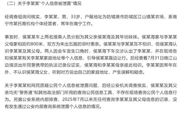 公眾最為關(guān)心的是,個(gè)人信息為何能被當(dāng)場(chǎng)調(diào)取并用于威脅他人,這引發(fā)了大家對(duì)個(gè)人信息可能被輕易調(diào)取濫用的擔(dān)憂與憤慨。我認(rèn)為,通報(bào)基本解釋清楚了這個(gè)問題?!傲磷C姐”的父親當(dāng)時(shí)在車上,他認(rèn)識(shí)“平頭哥”李某某的母親,兩人是遠(yuǎn)親,且兩家相距不到800米,所以對(duì)李家情況有所了解,能夠當(dāng)場(chǎng)說出李某某的姓氏和住址。通報(bào)還證實(shí),李某某的個(gè)人信息近期并未被查閱過。雖然這種情況巧合得有些離譜,但考慮到事件發(fā)生在“農(nóng)村公路”上,農(nóng)村里鄉(xiāng)親之間相互了解的可能性較大,而且最終是“亮證姐”做出了退讓,通報(bào)中提到是她父親引導(dǎo)她靠邊讓行,這讓事情的邏輯更加可信。