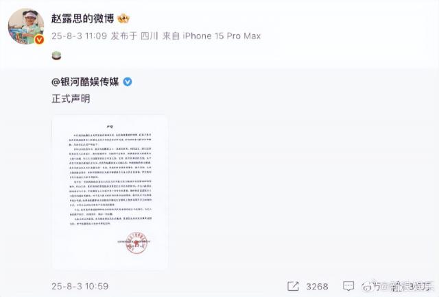 趙露思炮轟“銀河酷娛”風(fēng)波有了后續(xù)。8月3日上午,“銀河酷娛”發(fā)文回應(yīng),稱不存在違法行為,還內(nèi)涵趙露思語焉不詳,并且沒有解除合約。