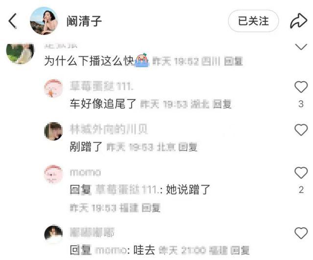 懷孕后的闞清子沒再接戲,但狀態(tài)不錯(cuò)的她一直在直播。曬完孕期美照后,還沒到工作室的她在坐車時(shí)開啟了直播。不過(guò),有觀看直播的網(wǎng)友透露,闞清子播了沒多久,就說(shuō)車輛剮蹭,話都沒說(shuō)完就急忙下播了。