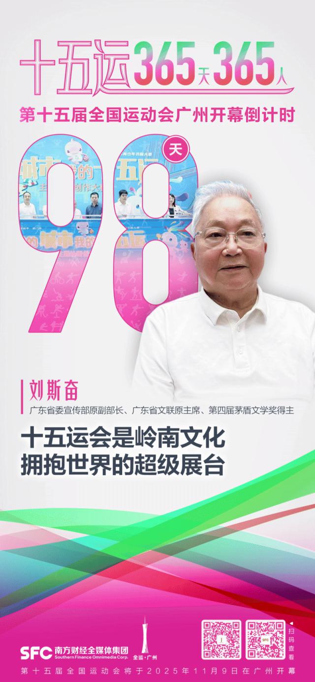 第十五屆全國(guó)運(yùn)動(dòng)會(huì)將于2025年11月在粵港澳三地舉辦。這不僅是一場(chǎng)體育盛會(huì),更是推動(dòng)全民健身、促進(jìn)體育事業(yè)高質(zhì)量發(fā)展的重要契機(jī)。在十五運(yùn)會(huì)開幕倒計(jì)時(shí)一周年之際,南方財(cái)經(jīng)全媒體集團(tuán)與十五運(yùn)會(huì)和殘?zhí)貖W會(huì)廣州賽區(qū)執(zhí)委會(huì)推出“十五運(yùn)365天365人”專欄,聚焦運(yùn)動(dòng)員、企業(yè)家、專家學(xué)者、體育愛(ài)好者及社會(huì)公眾的全運(yùn)故事與全運(yùn)期待,讓更多人了解和關(guān)注十五運(yùn),生動(dòng)展現(xiàn)我國(guó)體育精神、城市活力和文化魅力。