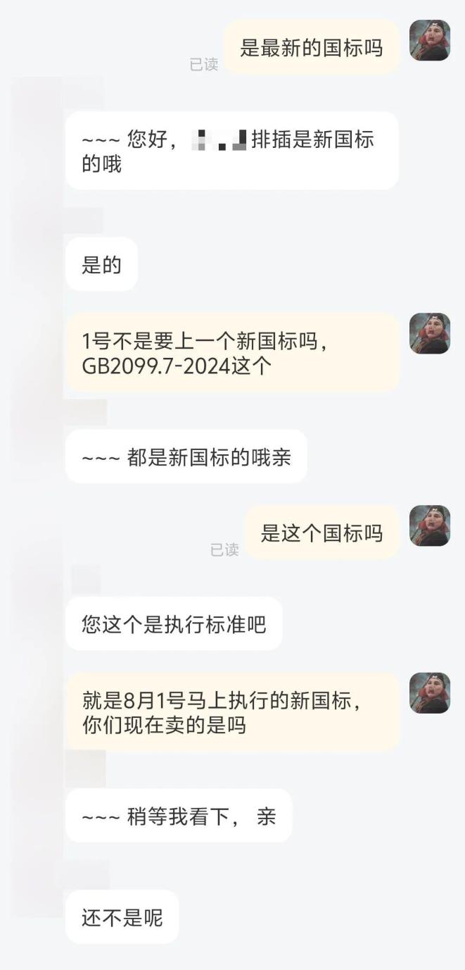 有的商家客服都沒搞清最新國(guó)標(biāo),我們說了編號(hào),還拿舊國(guó)標(biāo)圖回復(fù)。