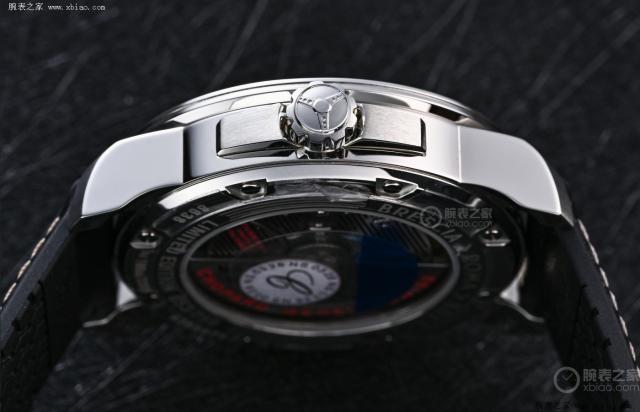 此外,‘鄧祿普賽車胎紋’的黑色小牛皮表帶也是這款表古典元素的體現。表帶另一側采用橡膠襯里,具有一定防水效果,增強了耐用性。