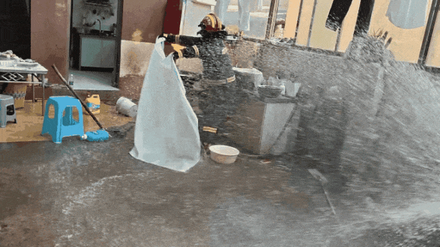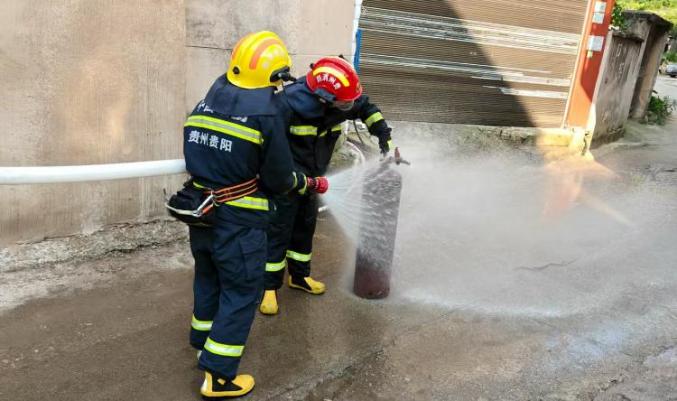 專職消防員到達(dá)現(xiàn)場后,發(fā)現(xiàn)起火的是廚房的液化氣瓶,此時火勢正處于發(fā)展階段。消防員立即打濕消防滅火毯,覆蓋在液化氣瓶上,并迅速關(guān)閉氣閥。隨后,將液化氣瓶轉(zhuǎn)移到空曠地帶,用水槍對其進(jìn)行降溫冷卻。經(jīng)過一番緊張的處置,現(xiàn)場明火被成功撲滅。