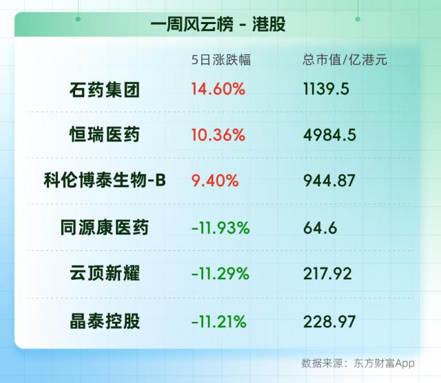 本周(7月28日至8月1日),恒瑞醫(yī)藥與跨國巨頭達成最高超百億美元BD合作后,再度成為“醫(yī)藥一哥”。