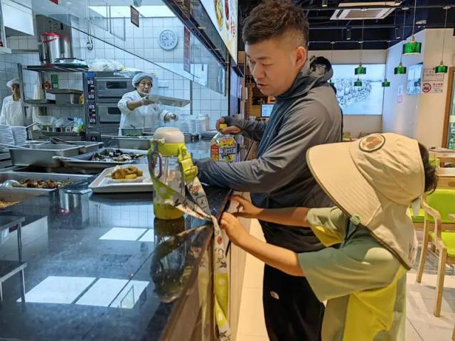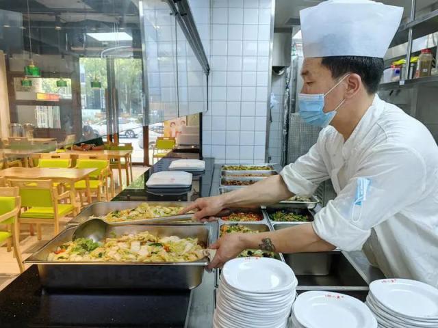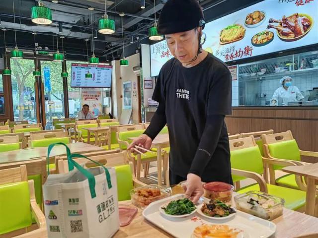 社區(qū)居民王叔叔特意來打包了紅燒大排、咸水雞腿等五六個菜,他說:“他們做的菜味道好,又干凈衛(wèi)生,我們吃得放心、開心。最近孫子放假在家,天熱家里就不開火了。來買一次,一家人能吃兩頓,方便、舒服。”