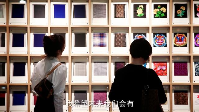 負責人一邊展示著可觸摸的展品墻,一邊說道:“我們希望讓傳統(tǒng)材料‘活’起來,年輕人能在這里找到國潮設計的靈感,長者也能重溫舊時的技藝?!?/p>