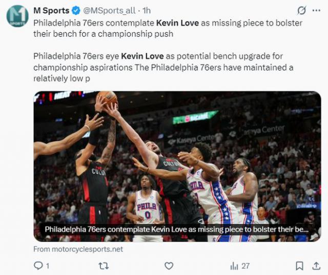 據(jù)美媒M Sports報(bào)道,費(fèi)城考慮引進(jìn)樂(lè)福以填補(bǔ)球隊(duì)替補(bǔ)陣容深度,費(fèi)城希望以較低預(yù)算為恩比德、喬治打造沖冠陣容。