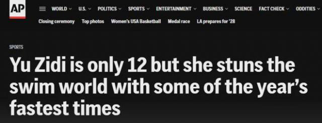 8月3日,新加坡游泳錦標(biāo)賽落下帷幕,中國神童于子迪的出色表現(xiàn)驚艷眾人。她驚人的速度讓全世界為之驚嘆,就連常常戴著有色眼鏡的美國媒體也對她贊不絕口,盛贊她為最強(qiáng)天才。