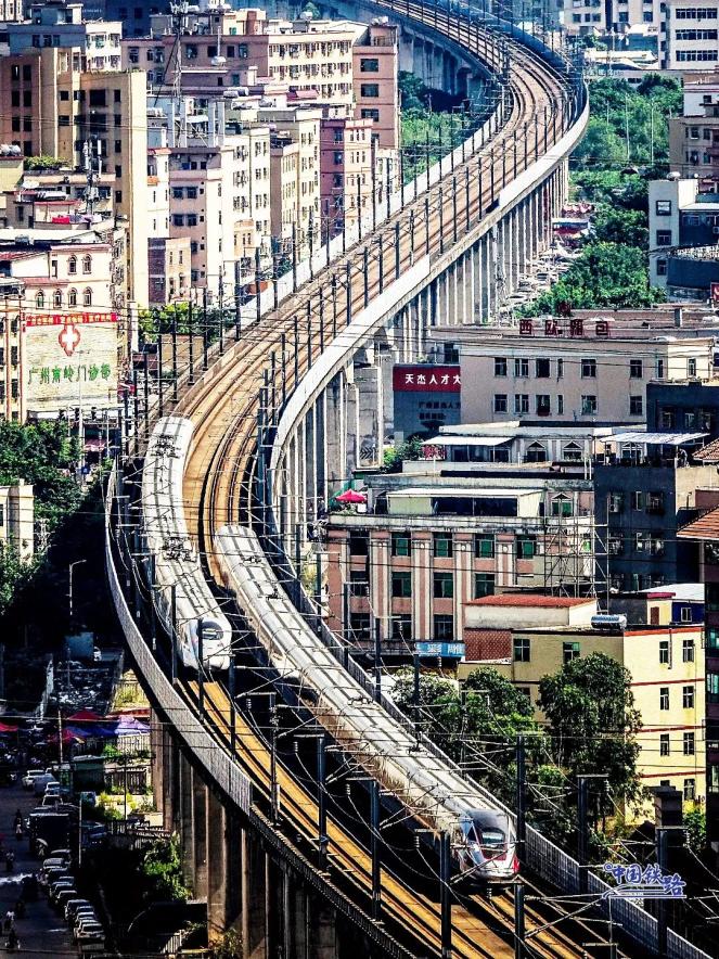近日,一段高鐵并行的視頻讓不少網(wǎng)友直呼過癮。畫面中,從廣州南開往宜賓西的G3718次和諧號,被香港西九龍開往南寧東的G418次智能復興號追上,兩車齊頭并進了十幾分鐘。