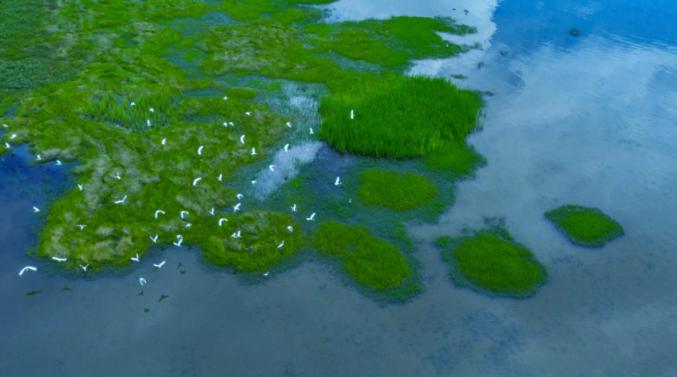 在云南省大理白族自治州洱源縣的茈碧湖畔,藍(lán)天白云清晰地映照在湖水中,白鷺在青山綠水間自在地飛翔,一幅絕美的生態(tài)畫(huà)卷正緩緩展開(kāi)。