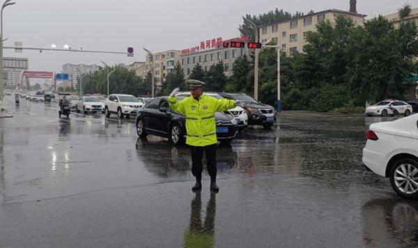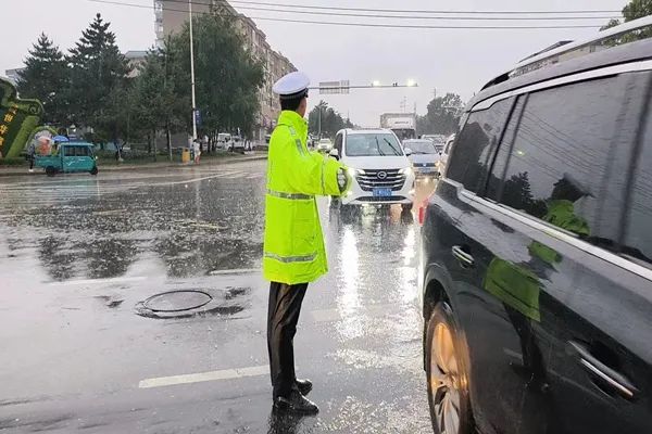風(fēng)雨相伴,梅河新區(qū)公安交警冒雨守護(hù)交通暢行