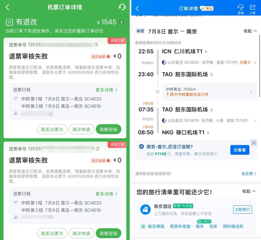 最終多次與航旅縱橫客服溝通后,她才要回了重復(fù)票的票錢?!翱头茈y找,好不容易聯(lián)系上了,它又說它只是代理商,出票時間也在規(guī)定范圍內(nèi),沒辦法給我解決。”