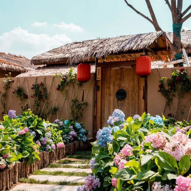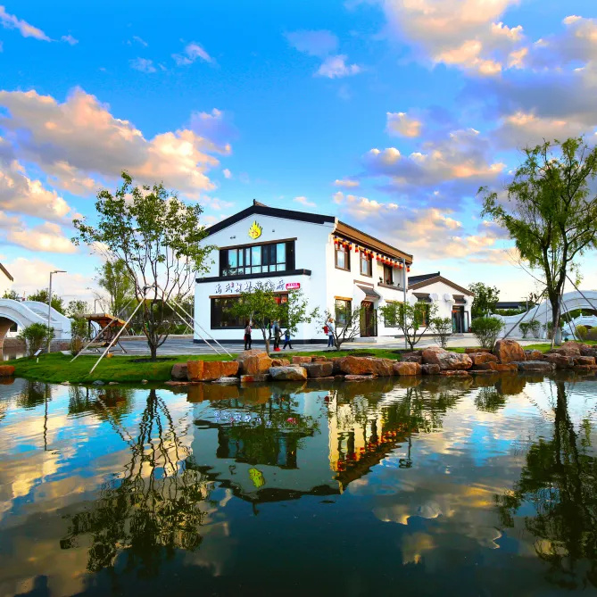知北村的夏天,宛如一座被時光溫柔包裹的東北老村落。青石巷中,茅草屋頂?shù)睦衔蒽o靜佇立,院墻上爬滿牽?;ǎケP、轆轤井、供銷社的老物件勾起舊時回憶。穿花布衫的姑娘挎著竹籃走過石板路,夜幕降臨,燈籠亮起,民俗小院飄出鐵鍋燉的香氣。在這里,每一步都踏著鄉(xiāng)愁,每一景都書寫著“從前慢”的詩意。