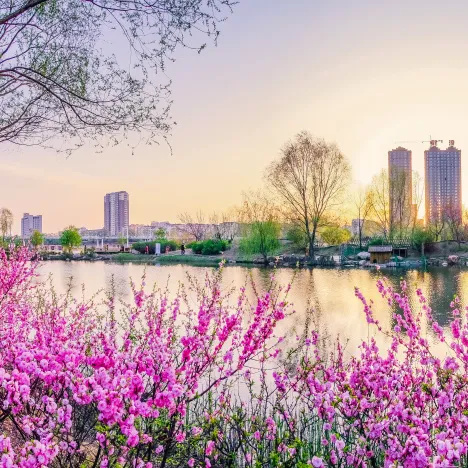 海龍湖的夏季,碧波蕩漾,垂柳拂岸,湖面倒映著藍天與云影。荷花盛開,粉白相間,點綴著粼粼波光。游船劃過,驚起飛鳥,掠過蘆葦叢。湖畔步道樹蔭濃密,蟬鳴陣陣,孩童的歡笑聲隨風飄散。夕陽西下,晚霞染紅湖面,為暑熱增添了幾分溫柔。
