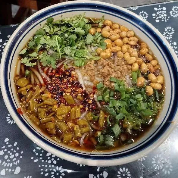 非遺粉坊酸辣粉:知北村現(xiàn)場制作的土豆粉,酸辣湯底加入鹵肉粽丁,讓人回味無窮。
