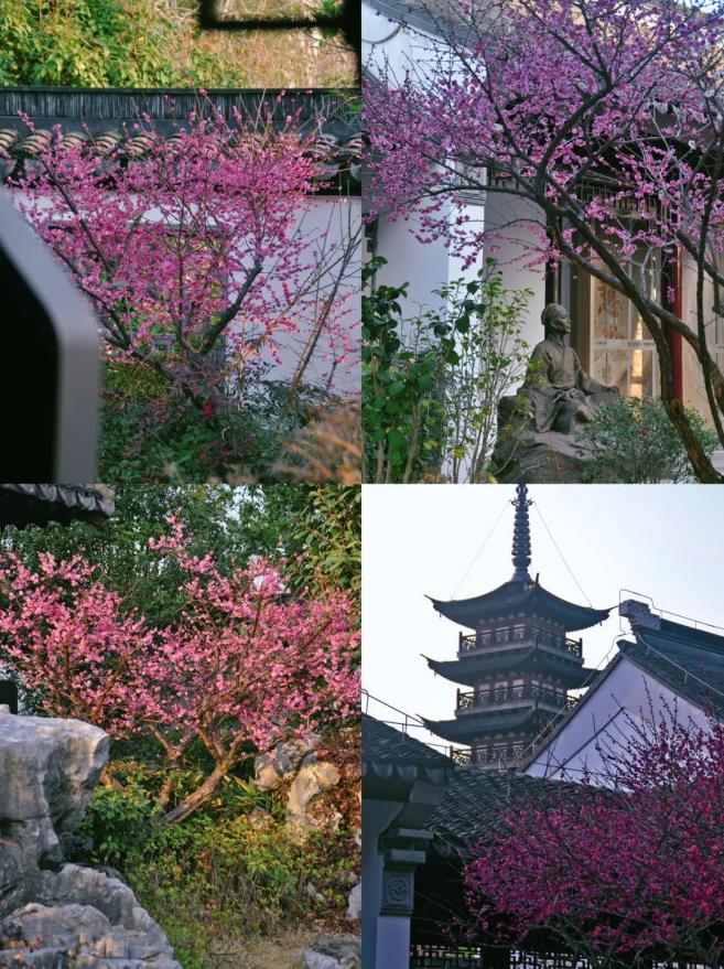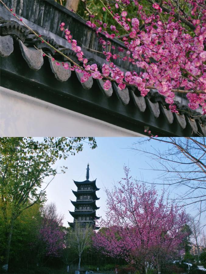 當(dāng)?shù)谝豢|春風(fēng)掠過(guò)萬(wàn)壽塔的檐角,青溪園的春天便蘇醒了。在古塔下,水園、塔園內(nèi),紅梅似火般艷麗,瓊花如雪般純潔,紅花檵木熱熱鬧鬧地綻放,棣棠花叢宛如燃起的明黃火焰。鏡云湖的假山疊瀑旁,迎春花和海棠花競(jìng)相盛開(kāi),熱鬧得如同趕集一般。風(fēng)一吹,花瓣紛紛飄落,落在游人的肩頭,也落在青石板路的縫隙里。