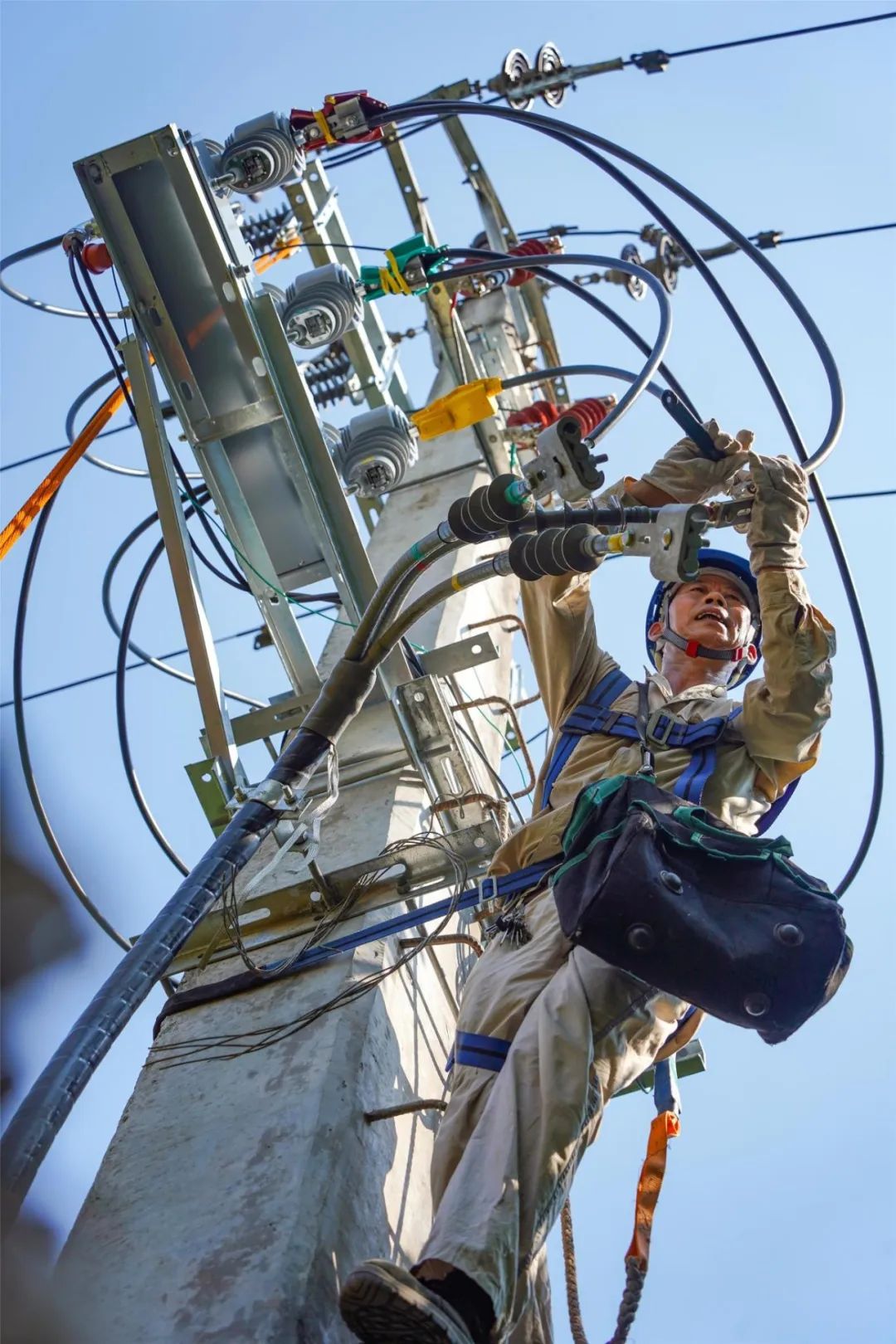 烈日炎炎,城市仿佛進(jìn)入了“燒烤模式”。當(dāng)我們?cè)跊鏊目照{(diào)房里躲避熱浪時(shí),有一群人卻身著厚重的絕緣服,在滾燙的電線桿間“帶電起舞”。