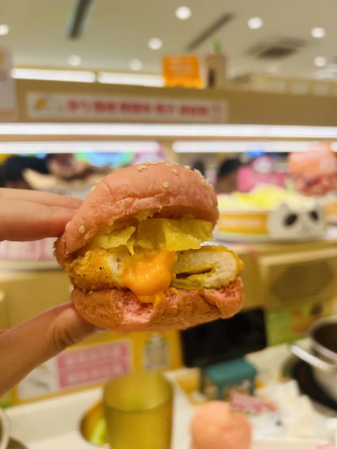 賣點(diǎn)之一的榴蓮披薩和高手漢堡不在傳送帶上,需要掃碼下單,現(xiàn)點(diǎn)現(xiàn)做,等待一段時(shí)間后,有服務(wù)人員送上桌。