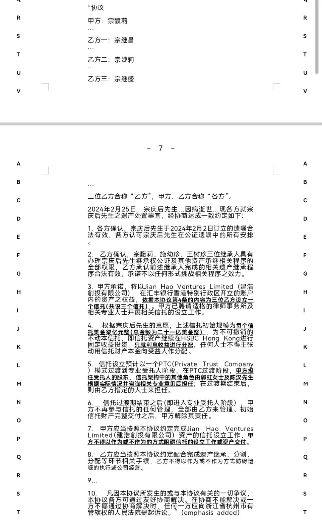 不過,香港高等法院的法官也特別強調(diào)——“本案的訴訟并不涉及宗慶后的遺產(chǎn)的管理事項,前述背景僅為后文提及的相關(guān)協(xié)議提供理解基礎(chǔ),該等協(xié)議中提及了上述遺囑?!?/strong>