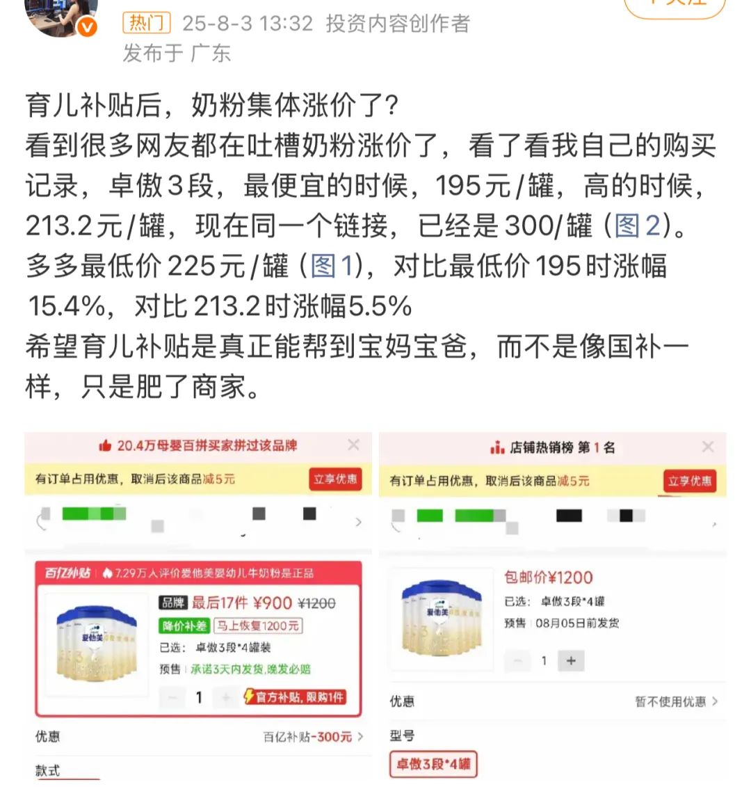 或許是品牌網(wǎng)店的正常調(diào)價,但恰好出現(xiàn)在育兒補貼政策剛剛公布不久,因此消費者情緒很大。