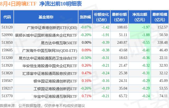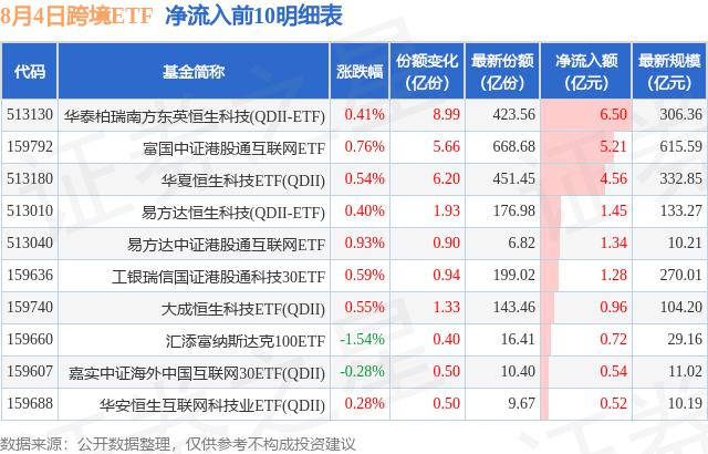 8月4日跨境ETF資金流向情況:凈流入17.94億元