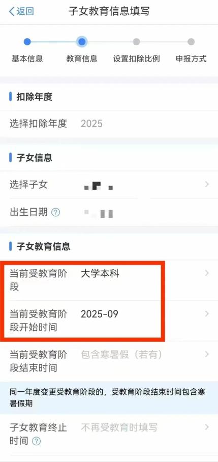 建議您在8月底、孩子大學(xué)入學(xué)前完成修改。這樣能確保從9月份(孩子入學(xué)當(dāng)月)開始,您的個稅扣除無縫銜接。