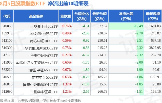 與此同時(shí),有226只股票指數(shù)ETF基金出現(xiàn)資金凈流出,凈流出排首位的是華夏上證50ETF(510050),份額減少了4.31億份,凈流出額為12.49億元。