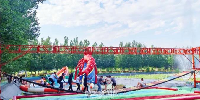 游客們坐完小火車后,有的帶著孩子來到新開放的網(wǎng)紅橋和喊泉游玩區(qū)。大人和孩子走上網(wǎng)紅橋,橋隨著大家的腳步劇烈搖晃,驚呼聲、歡笑聲不斷。在挑戰(zhàn)“平衡王者”的過程中,親子出游增添了許多歡樂和情誼。旁邊的喊泉更是有趣,體驗(yàn)者大聲呼喊,泉水就會(huì)像被施了魔法一樣沖向天空,讓人們?cè)谟瓮嬷斜M情放松身心。