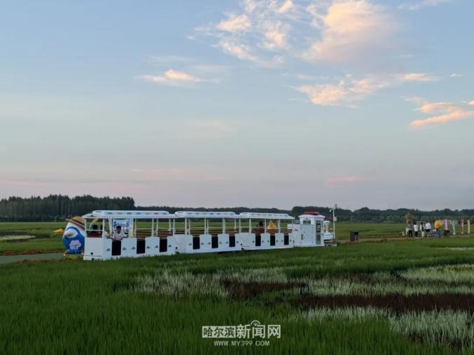 當(dāng)綠色稻浪與純白列車相遇,夏日稻田里的美好故事開始了。位于道里區(qū)的閆家崗稻田藝術(shù)農(nóng)場(chǎng),全新白色稻田小火車正式啟程。周末來農(nóng)場(chǎng)游玩的人坐著“云朵”般的小火車穿梭在田間,與周邊的稻浪、藍(lán)天、白云構(gòu)成了一幅天然畫卷,行駛在一望無際的稻田中,隨便一拍都是美美的照片。