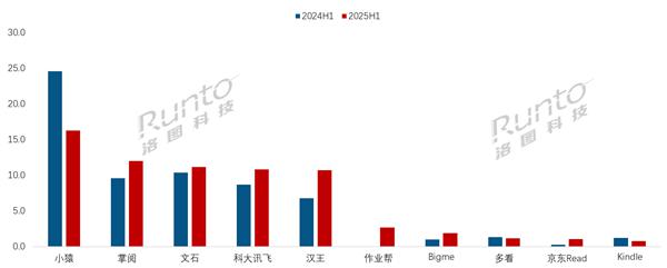 2025年上半年,線上市場銷量TOP5品牌為小猿、掌閱、文石、科大訊飛、漢王,合并份額為88.9%,較2024年同期提升2.1個(gè)百分點(diǎn)。
