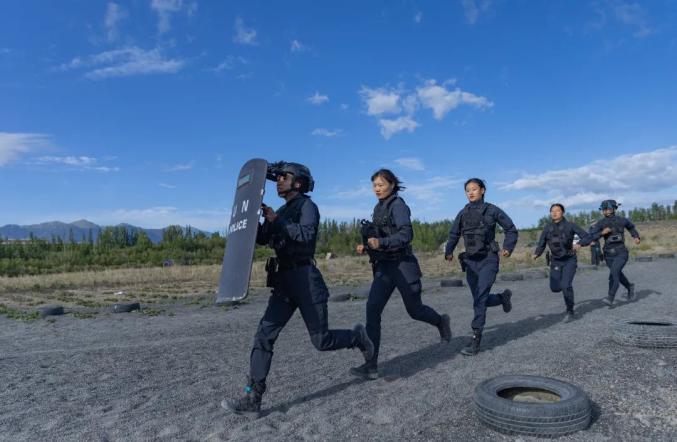 7月4日,“尖刀·使命”2025全國(guó)公安特警挑戰(zhàn)賽前夕,安徽特警參賽隊(duì)適應(yīng)場(chǎng)地,沖刺訓(xùn)練。