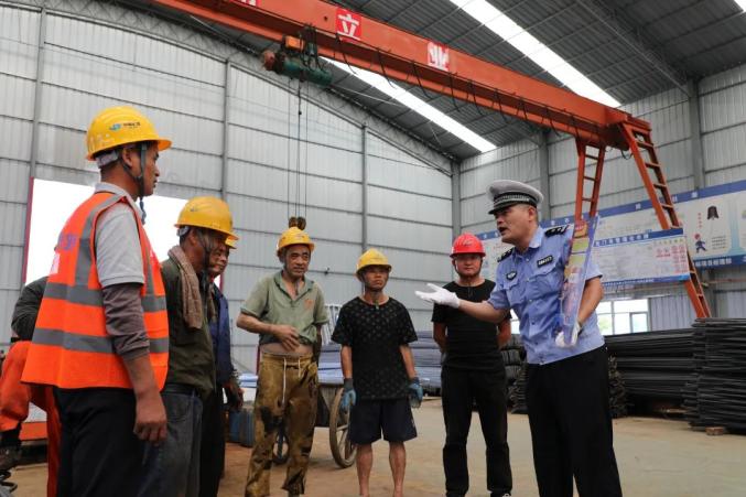 7月15日,巢湖市公安局交管大隊(duì)烔煬中隊(duì)民警走進(jìn)轄區(qū)建筑工地,開(kāi)展夏季道路交通安全宣傳。